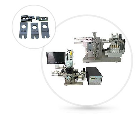 半自動(dòng)同軸剝線(xiàn)機(jī),端子鉚成型機(jī)。